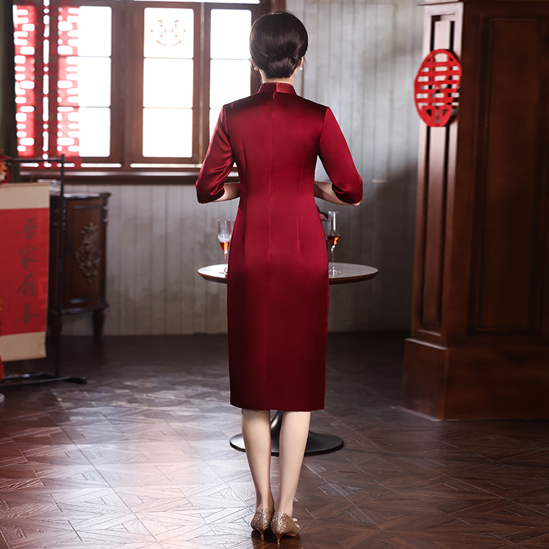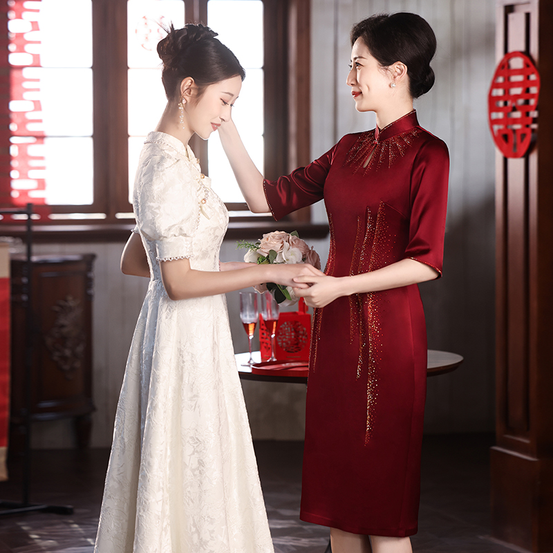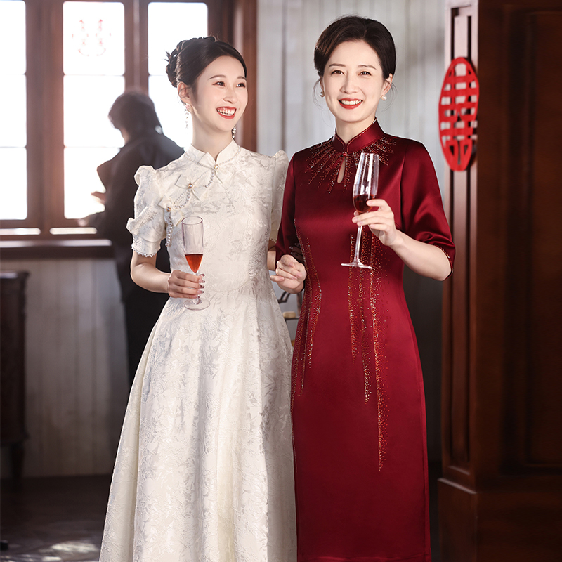 新中式 夏季 高贵年轻妈妈婚礼旗袍礼服 2025新款 酒红色喜婆婆婚宴装