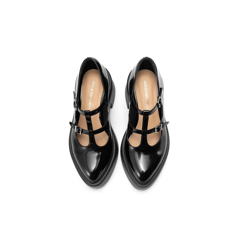 百搭粗跟复古高跟鞋 气质小皮鞋 黑色 女2025秋新款 JOOC玖诗玛丽珍鞋