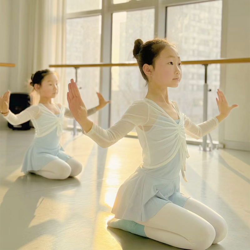 咔萌琪儿童舞蹈跳舞练功服女童中国舞粉色芭蕾演出服秋冬长袖 套装