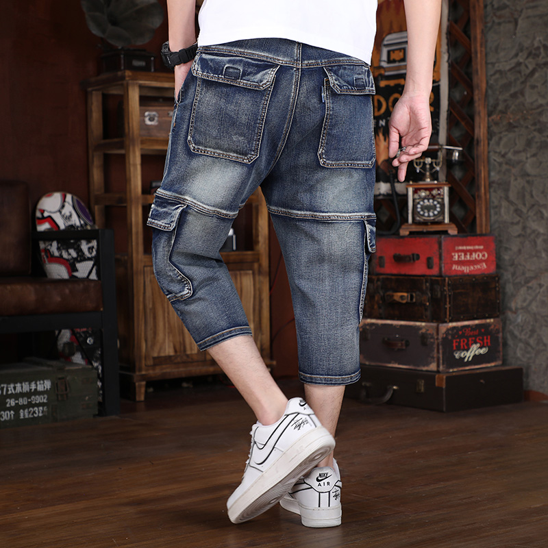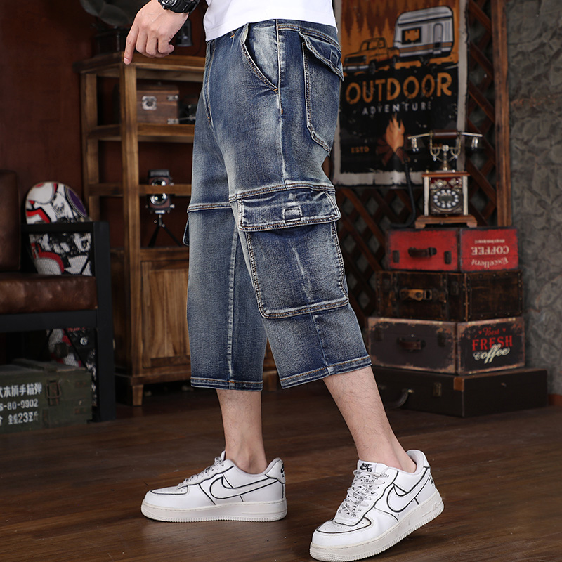 潮牌夏季 男宽松直筒外穿7分中裤 2025 七分牛仔短裤 弹力多口袋工装