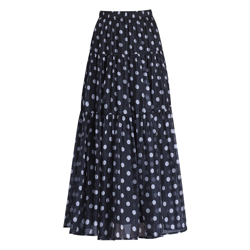 轻盈白色波点半身裙长裙子女2025夏季 高腰雪纺伞裙A字裙大摆 新款