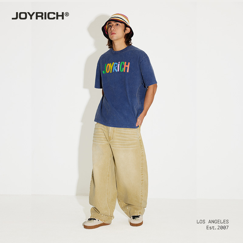 男女同款 圆领T恤25春秋款 街头宽松水洗彩虹涂鸦短袖 JOYRICH美式