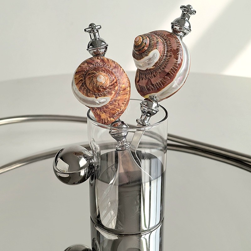 LIVETAI天然海螺不锈钢叉子ins风网红水果签可爱小螺贝壳西餐餐具