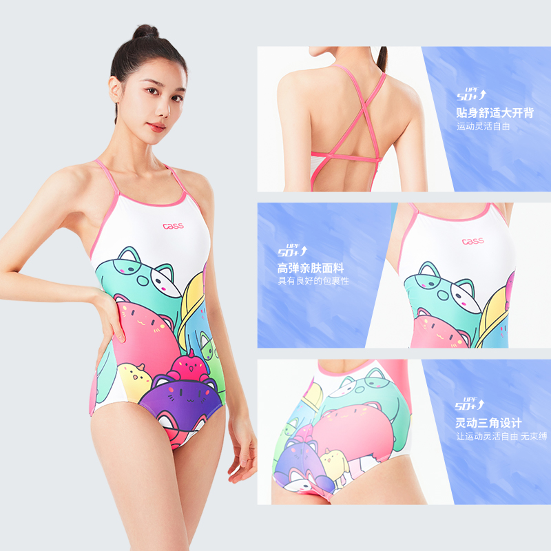 佳适CASS亲子泳衣女童母女连体三角新款 专业训练 中大童女孩游泳装