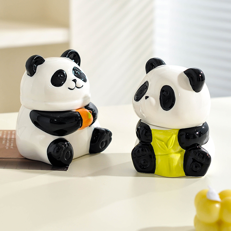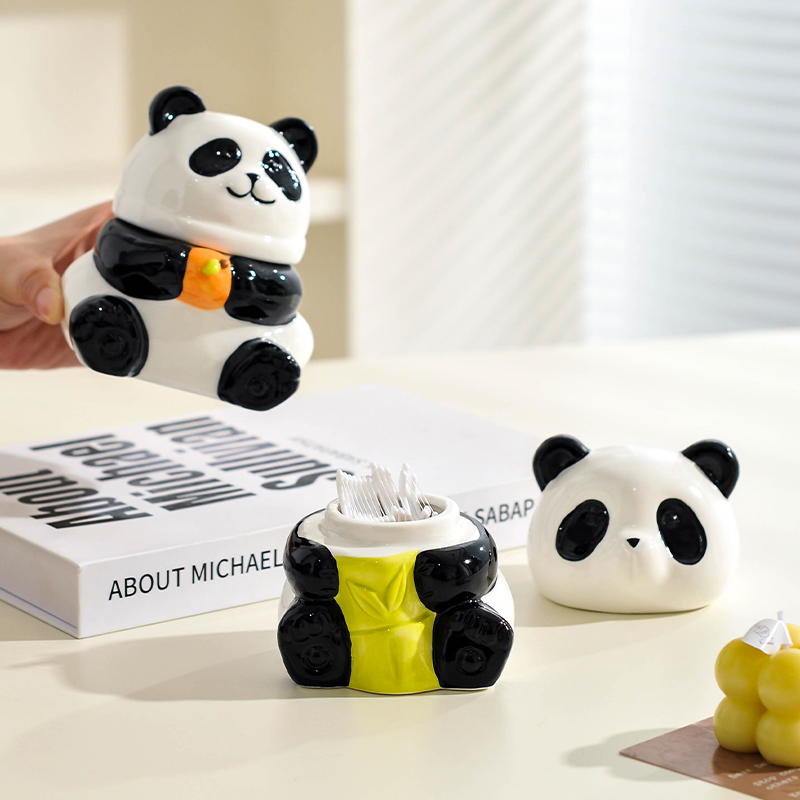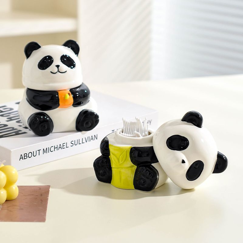 熊猫牙签盒家用高档陶瓷牙签筒小众可爱棉签盒棒牙线收纳盒牙签罐
