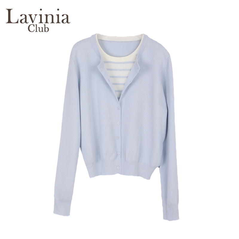 针织衫 条纹短袖 长袖 开衫 毛衣外套 RARN2025秋装 两件套圆领修身 新款