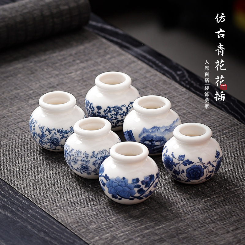 仿古中式 陶瓷花瓶摆件客厅插花桌面复古青花瓷迷你小花瓶水培花器