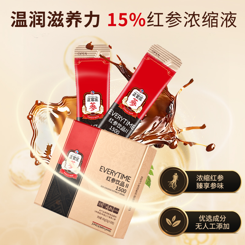 U先正官庄EVERYTIME15%红参含量浓缩液1袋西柚味1袋高丽参红参饮