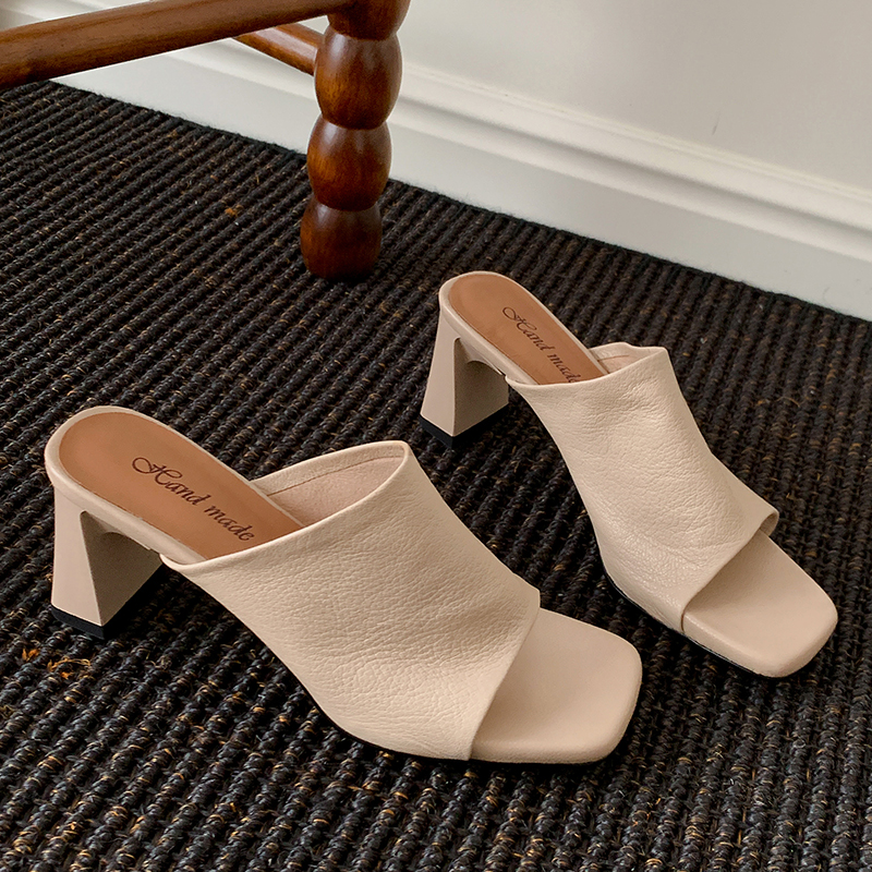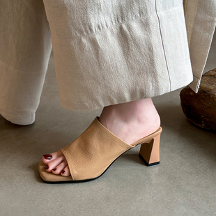 外穿2025新款 女显白真皮鞋 高跟一字度假风凉拖鞋 巨软羊皮凉鞋