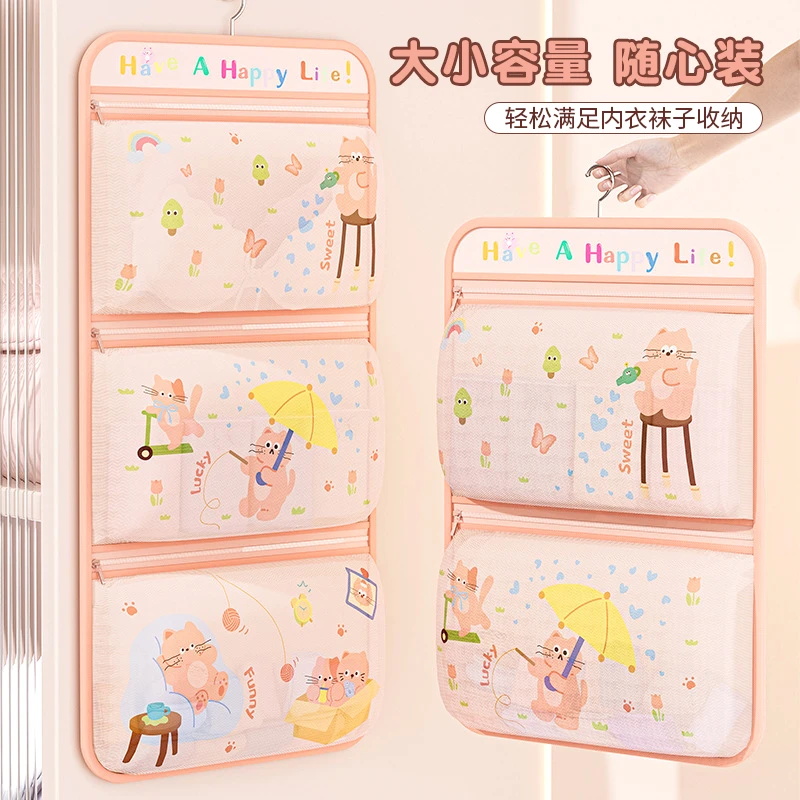 内衣收纳袋内裤 网兜 袜子整理神器宿舍衣柜门后置物袋三合一悬挂式