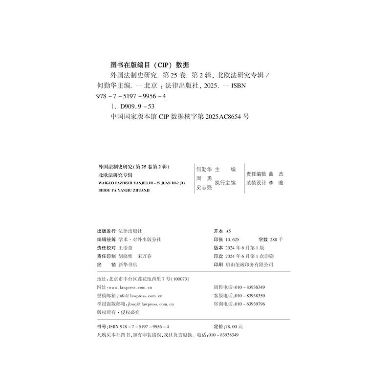 第25卷 第2辑 北欧法研究专辑 正版 法律出版 外国法制史研究 何勤华 社9787519799564 2024新书