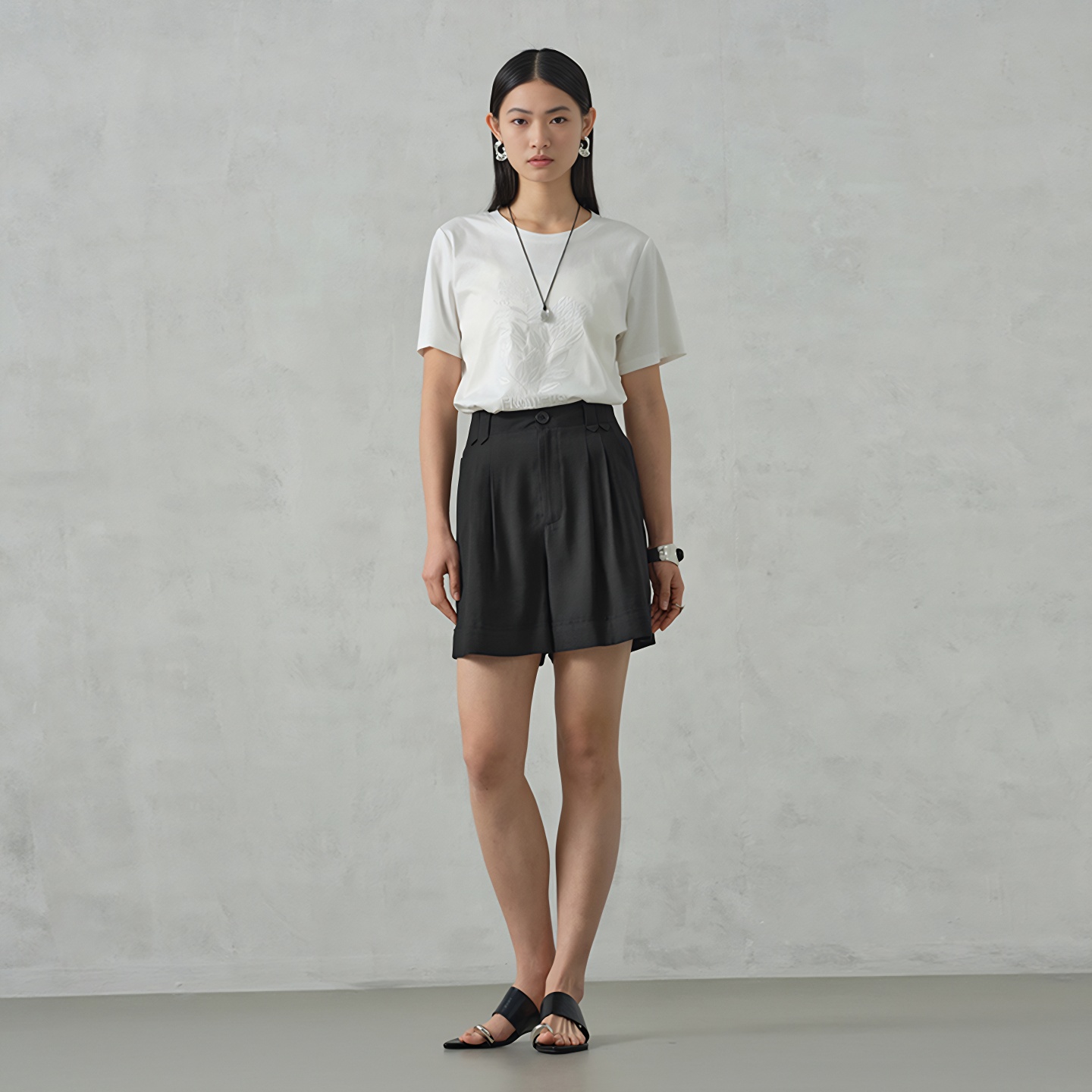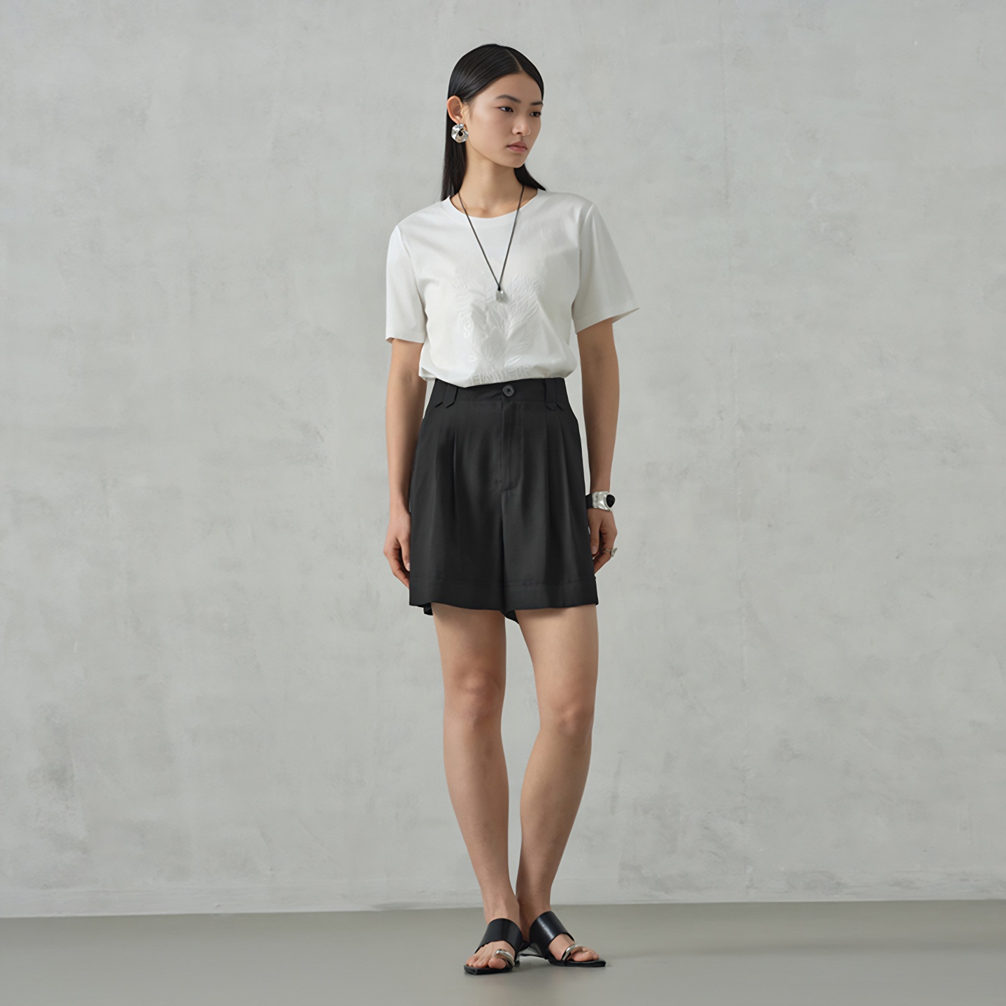 高腰垂感宽松休闲肌理感阔腿裤 白色奶芙冰丝山本裤 女夏2025年新款