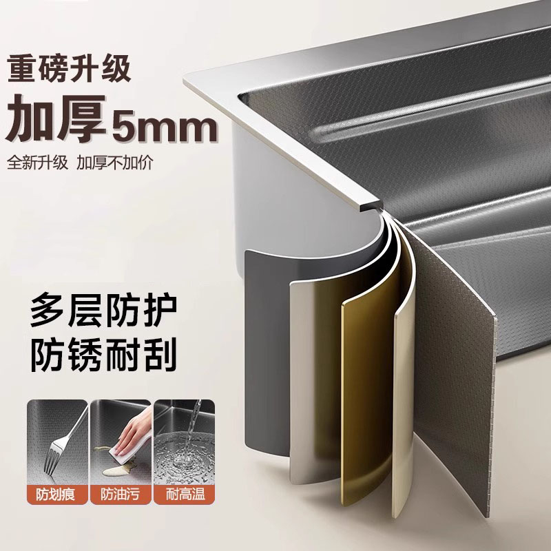 不锈钢水槽洗菜盆大单槽加厚5mm家用厨房菜盆洗碗槽池台下盆手工
