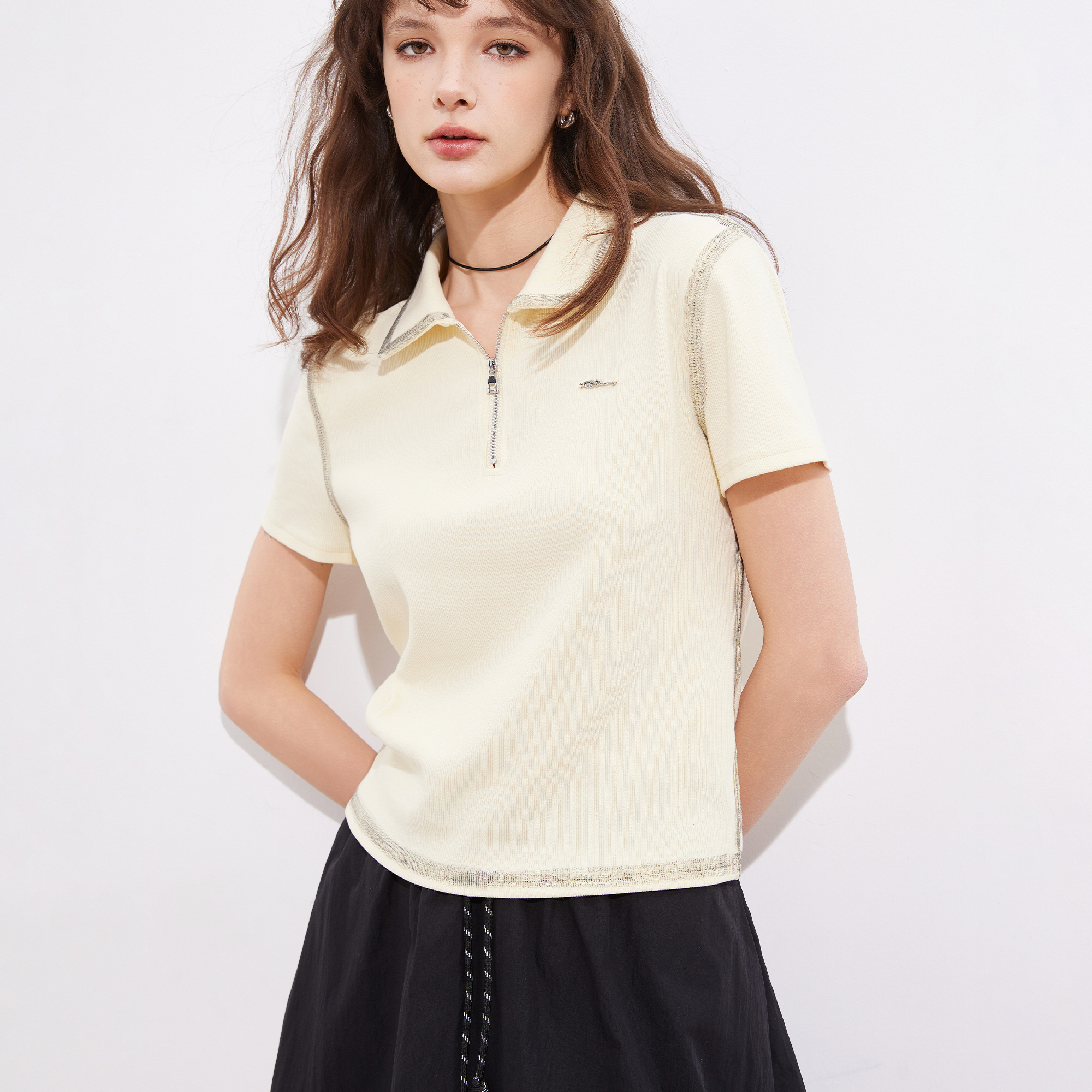 T恤女2025夏季 百家好学院风POLO领短袖 宽松休闲上衣 House Basic