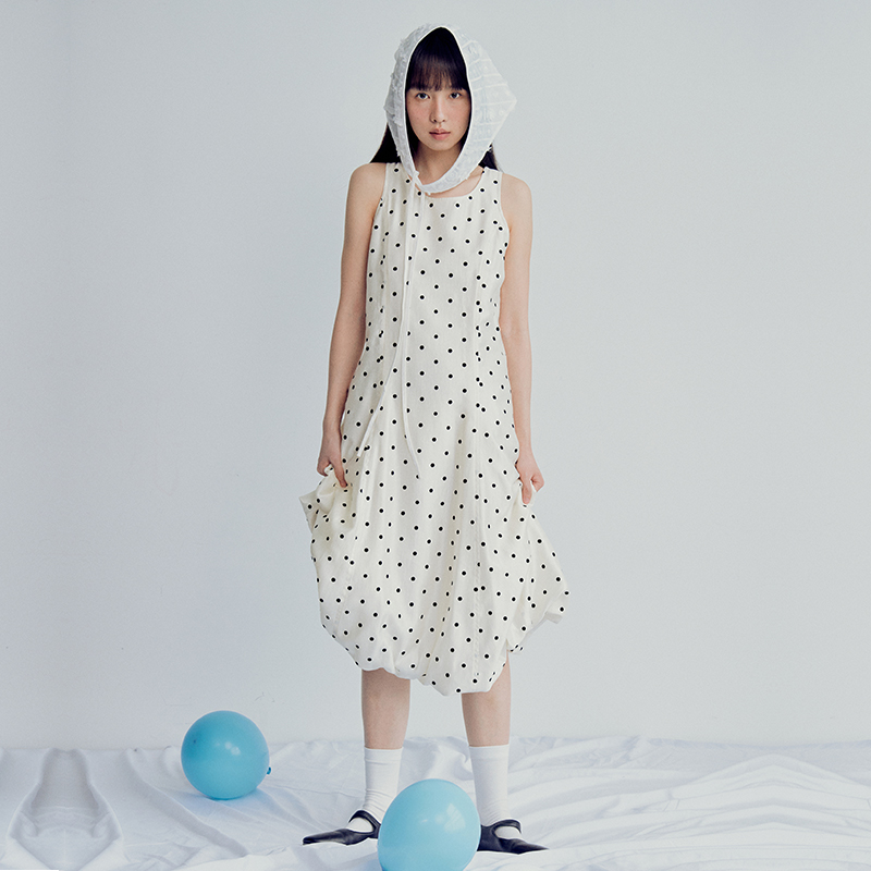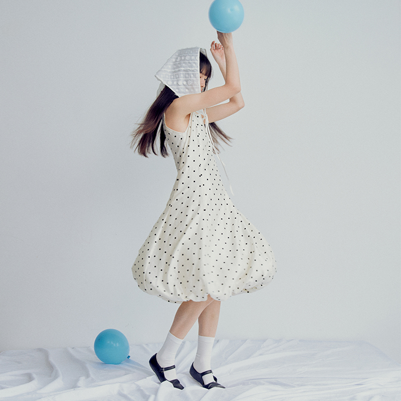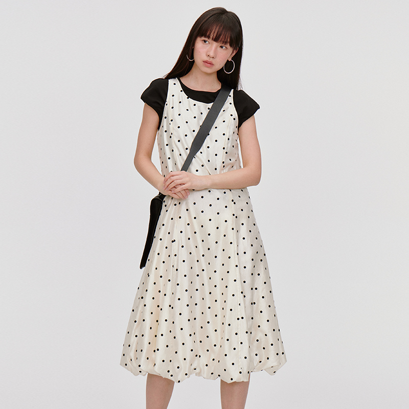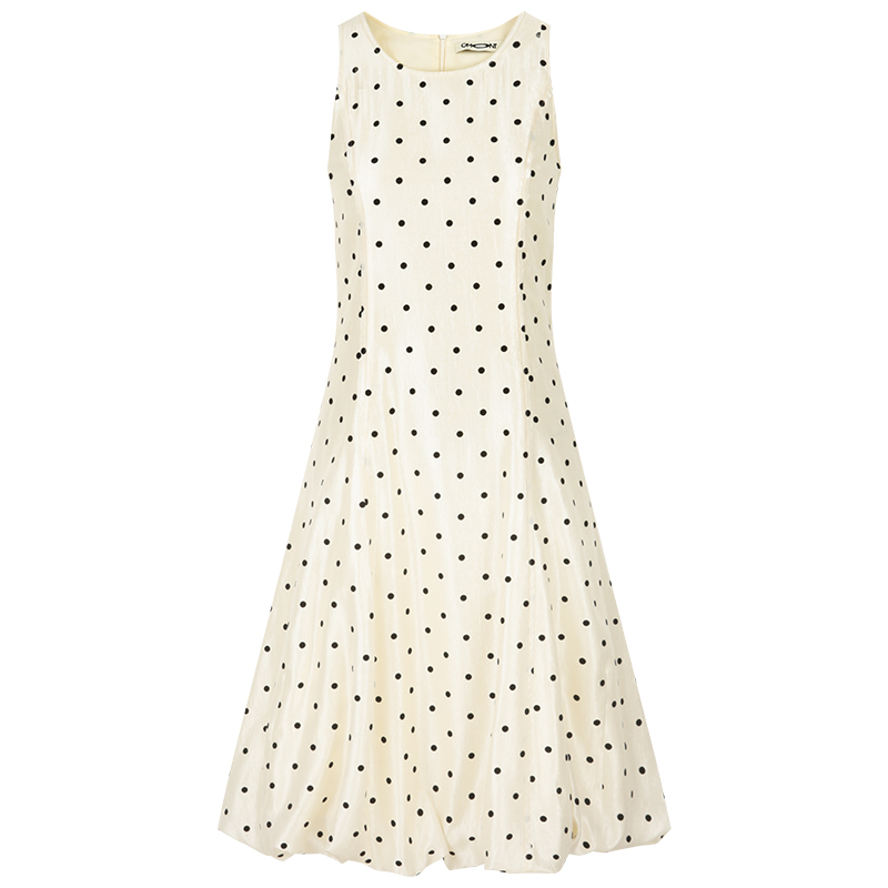 omont蛋挞家气质圆领波点花苞无袖 连衣裙2025夏圆领高级感中长裙