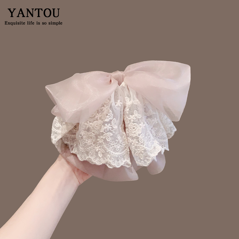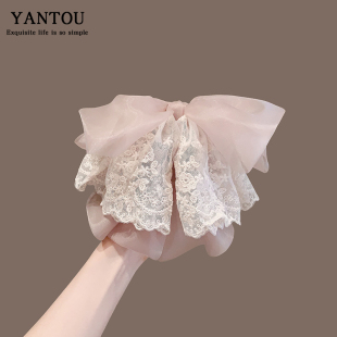 蕾丝蝴蝶结花边高马尾抓夹女时尚 气质后脑勺盘发抓夹顶夹发饰发卡