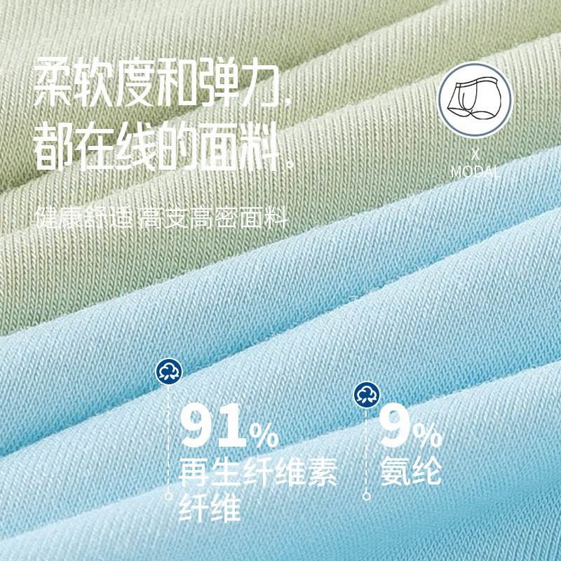 冰丝透气四角短裤 3件 莫代尔大码 平角内裤 男生 蕉内银皮500E男士