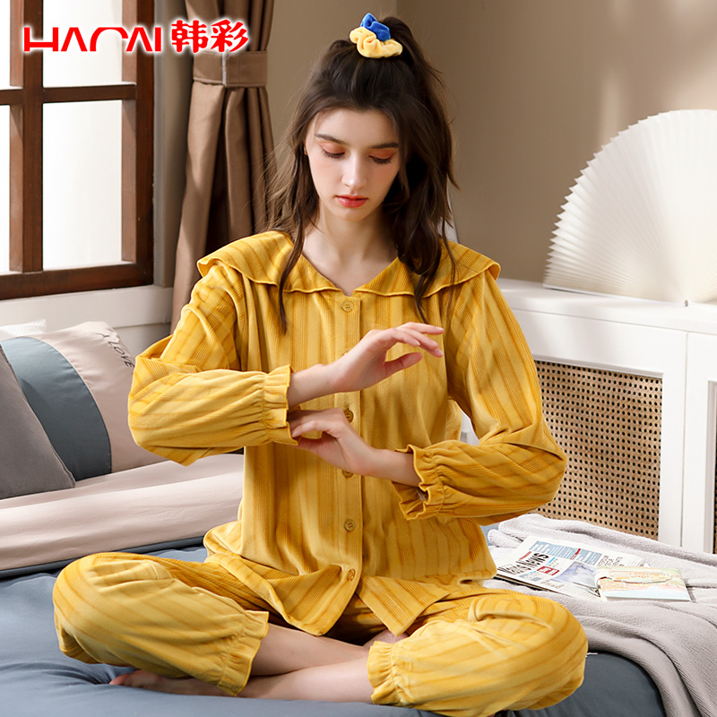 家居服秋冬套装 防螨抗菌A类时尚 2025新长袖 有内情侣纯棉睡衣女款