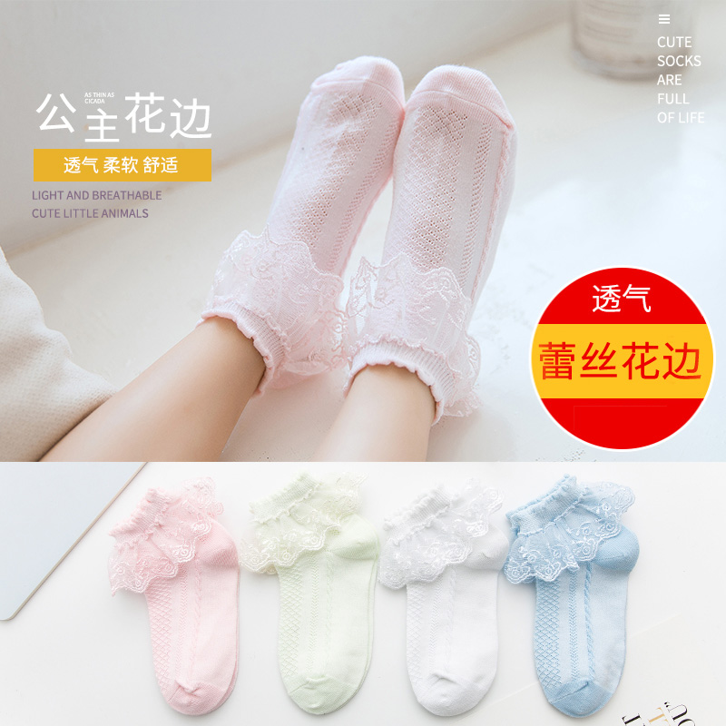 全棉女孩 纯棉短袜春秋款 南极人儿童袜子蕾丝女童花边公主夏季 薄款