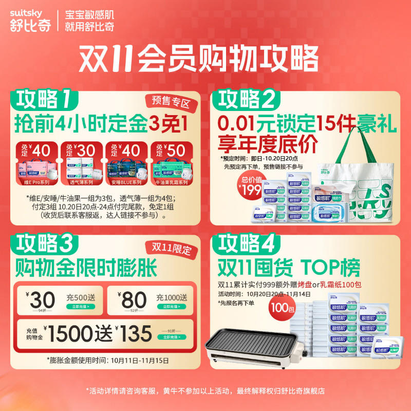 Pro敏感肌纸尿裤 舒比奇维E 婴儿尿不湿宝宝拉拉裤 拍6包送好礼