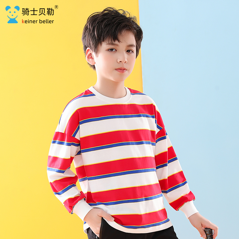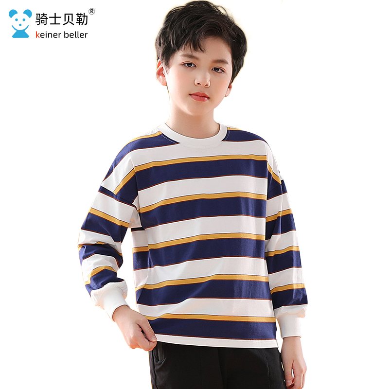 儿童休闲学院打底衫 童装 24新款 条纹圆领T恤长袖 中大童潮 男童秋季