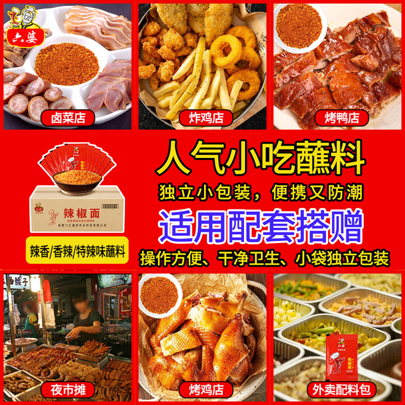 商用外卖小包装 干碟蘸料整箱装 1000袋餐饮批发 六婆辣椒面2g