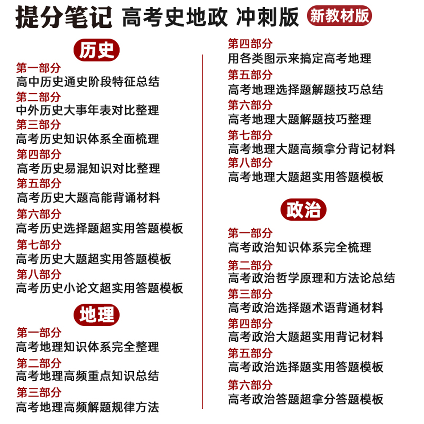 2026高考提分笔记高考文综冲刺版 高考历史地理政治文科总复习资料答题模板知识导图清单新教材新高考高中高三高二高一教辅书智尚