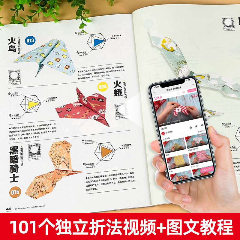 8岁趣味创意折法叠飞机手工儿童书本一百种爱玩 全世界孩子都爱玩 纸飞机大全高级折纸书高难度教学教程3d立体书3 折飞机 101款