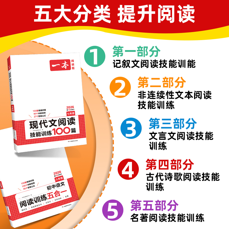 2026版 一本初中语文阅读训练五合一七年级八九中考现代文技能训练100篇人教初中生初一初三初二名著语文阅读理解专项训练书旗舰店