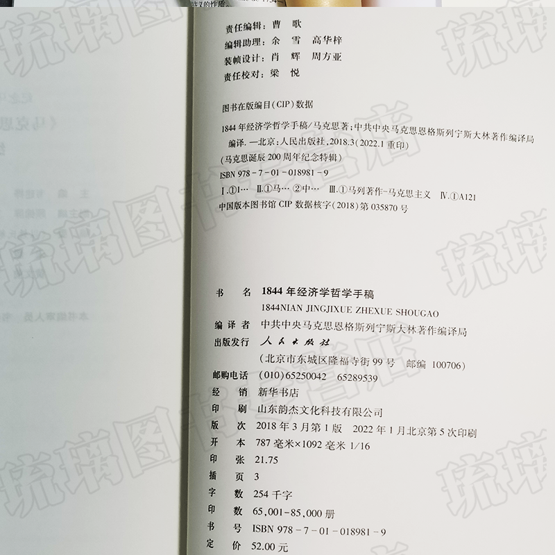 正版 附有按照手稿写作顺序编排文本马原哲学 任选 纪念马克思诞辰200周年 共产党宣言马克思恩格斯 马克思1844年经济学哲学手稿