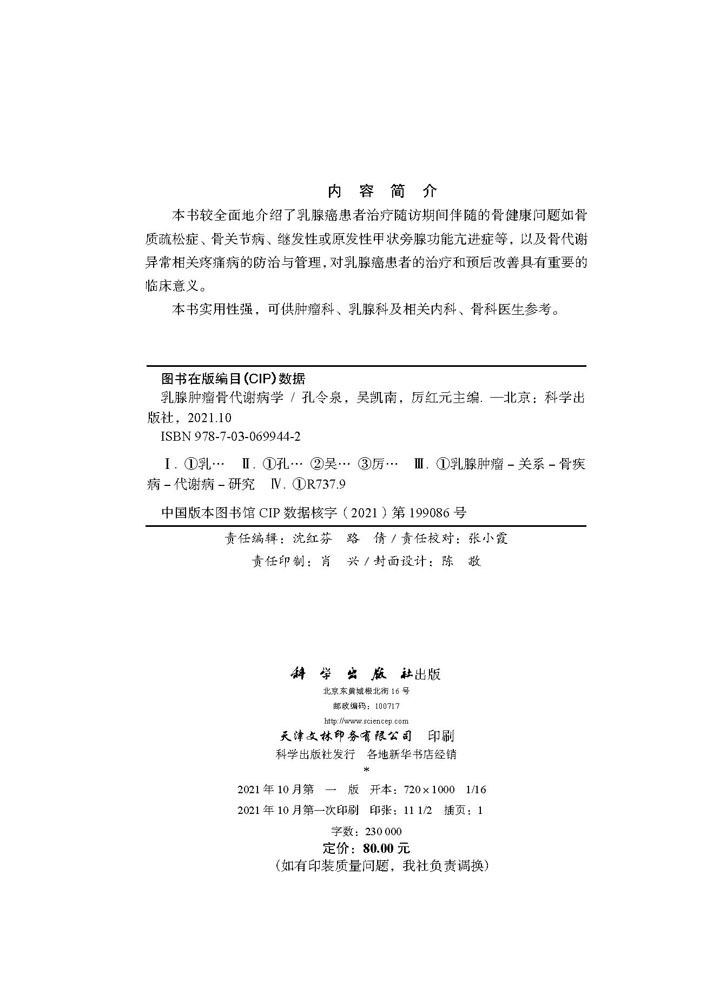 骨健康问题 9787030699442 吴凯南 社 科学出版 骨质疏松 乳腺癌患者治疗随访期间伴随 主编 厉红元 孔令泉 乳腺肿瘤骨代谢病学