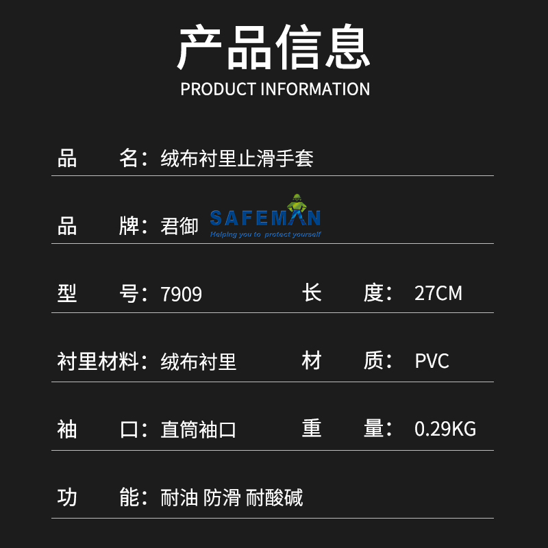 止滑手套加厚耐磨吸汗防水防化耐酸碱水产加工化工27cm劳保专用