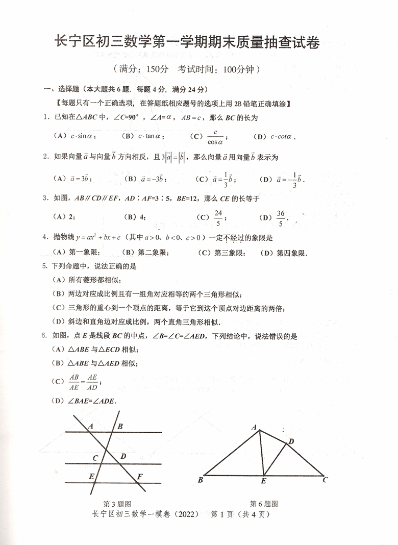 仅试卷 数学 领先一步文化课强化训练2021上海市初三数学一模卷期末质量抽查试卷精编 上海中考一模卷 现货2022年版