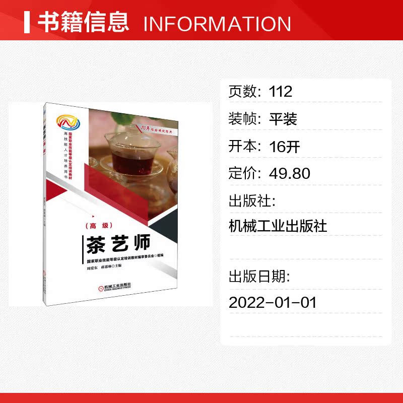 手工业专业科技 社 周爱东 机械工业出版 图书籍 新华书店正版 轻工业 编 蒋蕙琳 高级 茶艺师