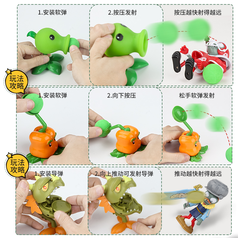 正版 植物大战僵尸玩具全套豌豆射手儿童男孩弹射玩偶软胶公仔模型