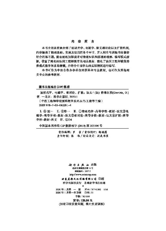 电磁学 Oceane 相对论 法文版 GEWIRTZ 扩散 波动光学