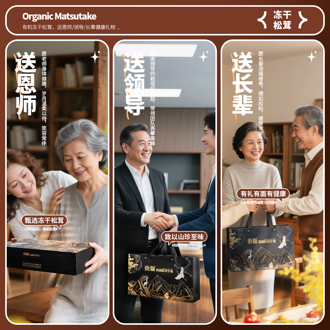 贡极冻干松茸干货礼盒装 营养品送男领导高档礼物档次有机松茸干片