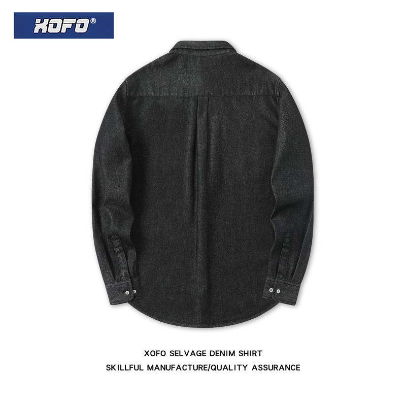 内搭休闲衬衣外套男士 衬衫 上衣 牛仔长袖 暗纹整体感设计黑色秋季