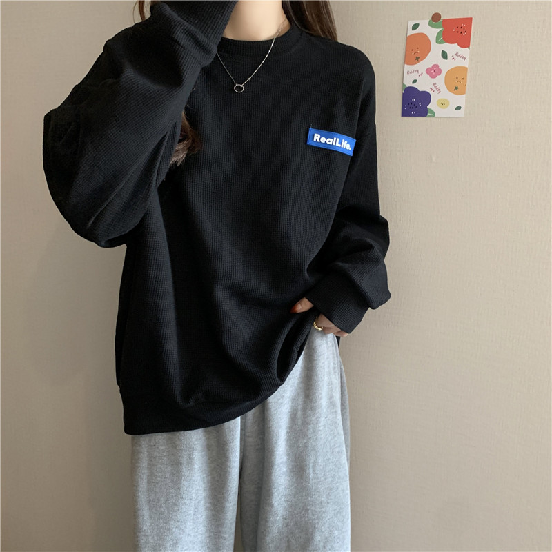 华夫格卫衣女2025年新款 宽松bf慵懒风学生百搭休闲上衣潮 春秋薄款