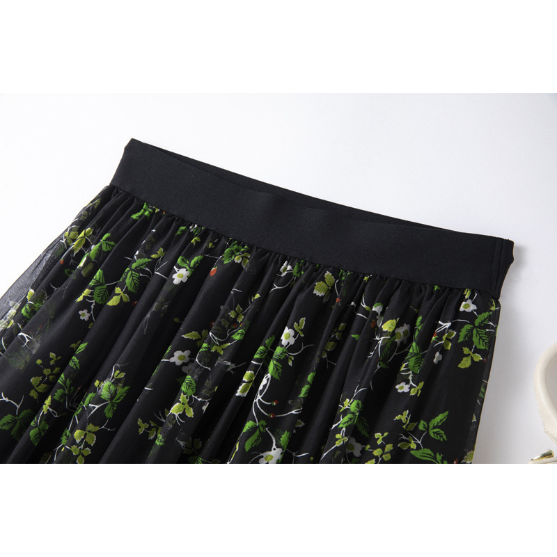 桑蚕丝真丝裙a字长裙印花半身裙夏季 气质仙女碎花黑色裙子 新款