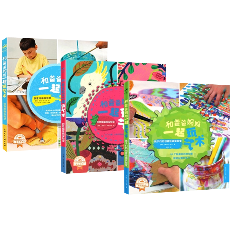 孩子们 和爸爸妈妈一起玩艺术 创意绘画实验室 创意蜡笔画实验室 丙烯画零基础教学书 正版 上海人民美术 全套3册