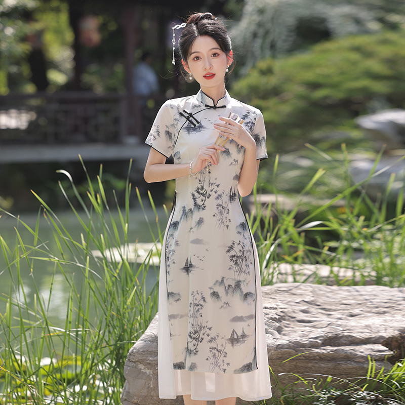气质长款 旗袍2025年新款 中袖 少女中国风复古改良版 显瘦优雅 年轻款