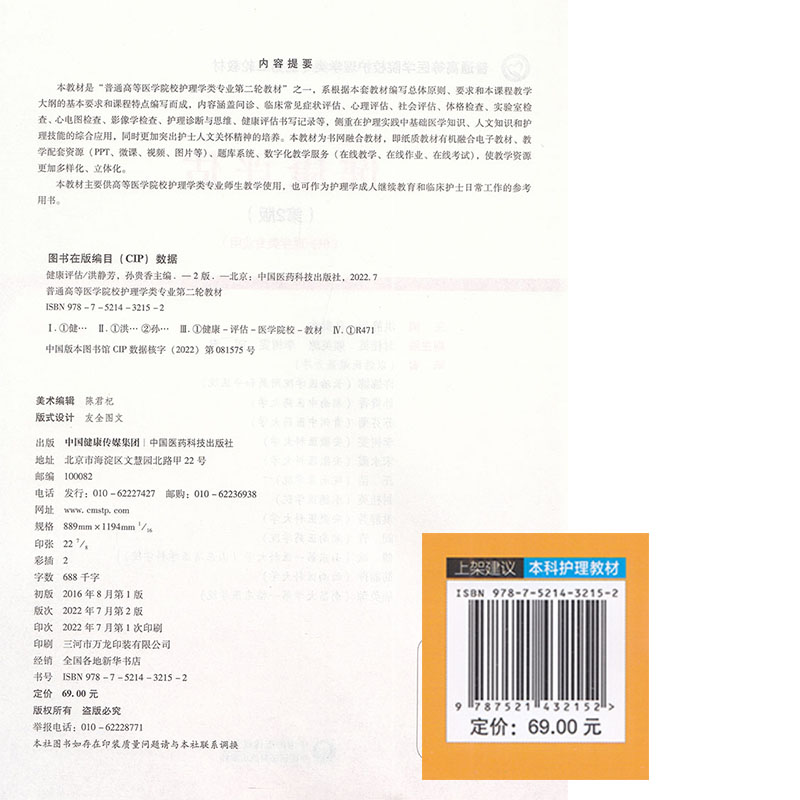 护理学 社 健康评估 孙贵香中国医药科技出版 洪静芳 普通高等医学院校护理学类专业第二轮教材 本科 第二轮 第2版 现货 正版