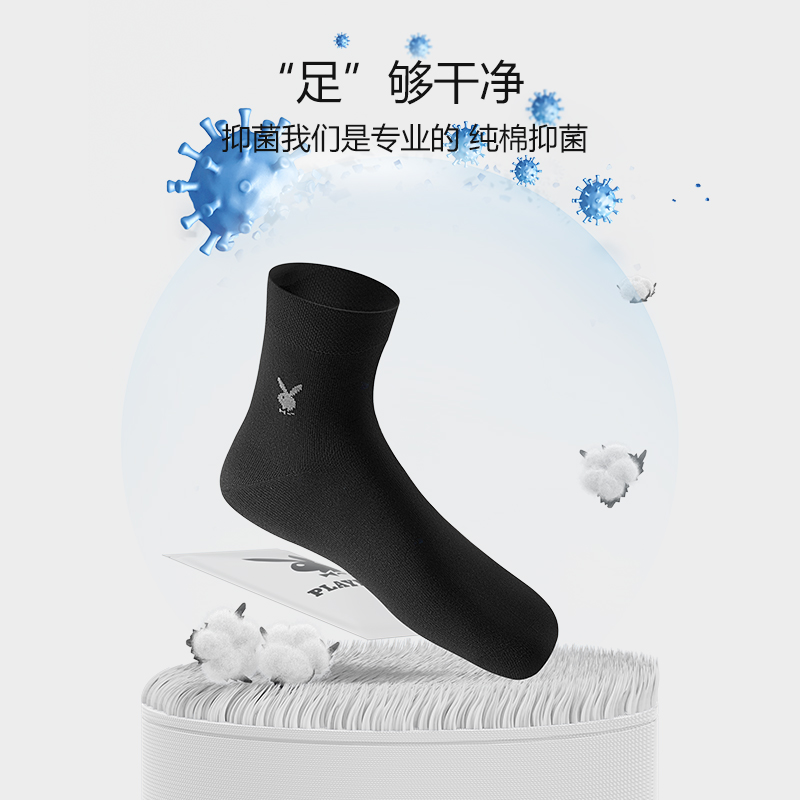 花花公子袜子男士 纯棉抗菌透气吸汗男生全棉黑色中筒长筒袜新 冬季