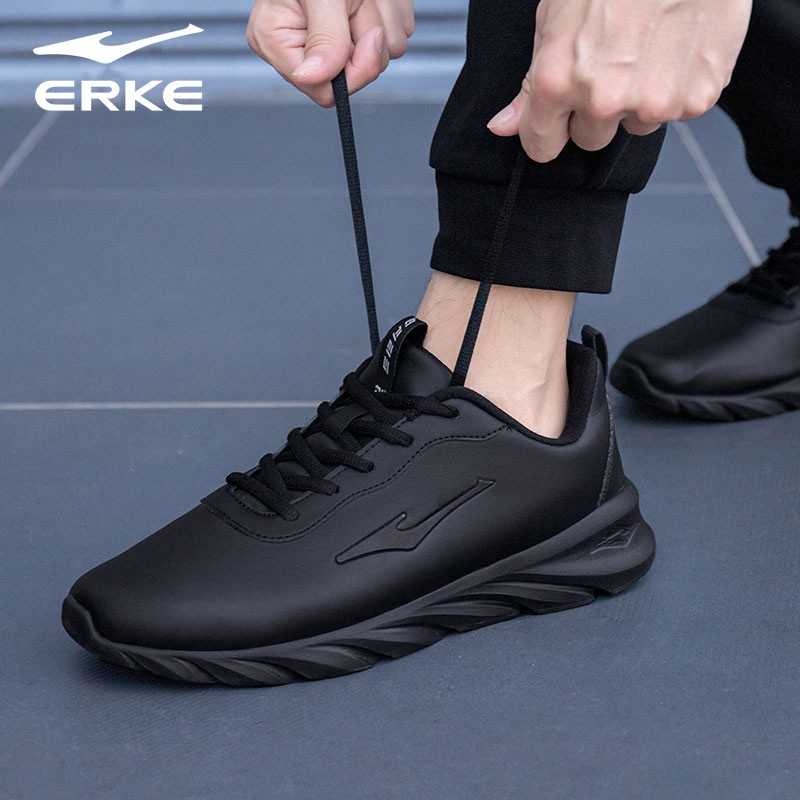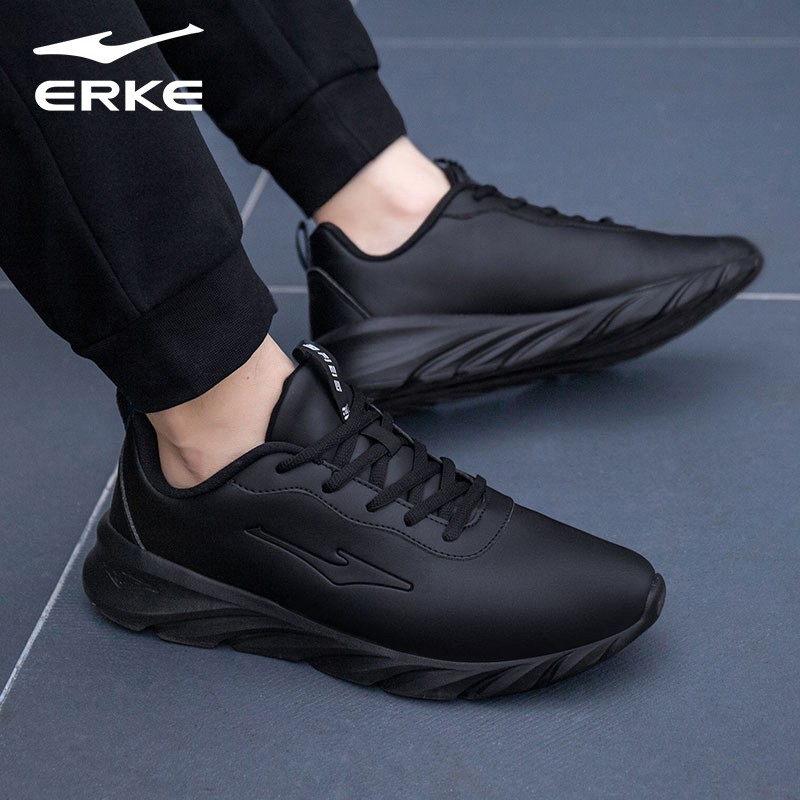 皮面防水鞋 秋季 子跑步鞋 黑色鞋 男 鸿星尔克男鞋 官方运动鞋 2025新款