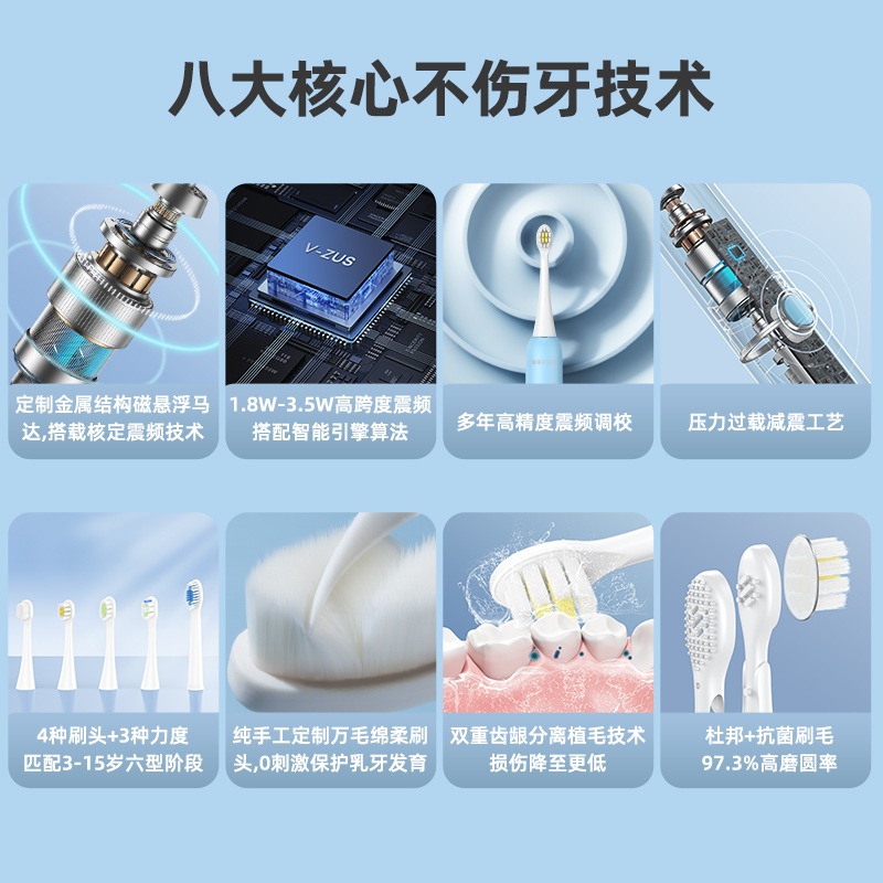 扉乐FiliX 15岁可用 VIIV儿童电动牙刷六型分段护理不伤牙迷你刷3