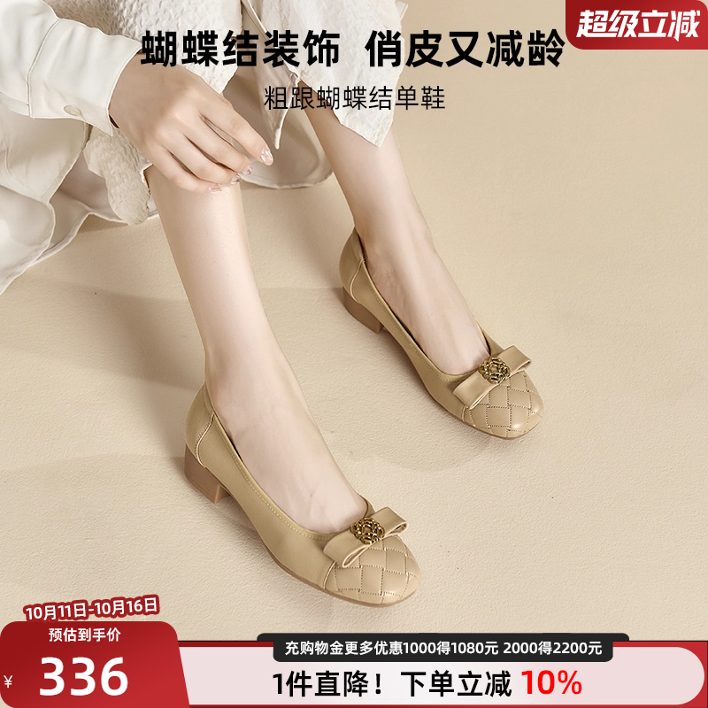 女秋软皮一脚蹬妈妈鞋 低跟单鞋 舒适真皮软底粗跟皮鞋 头层牛皮
