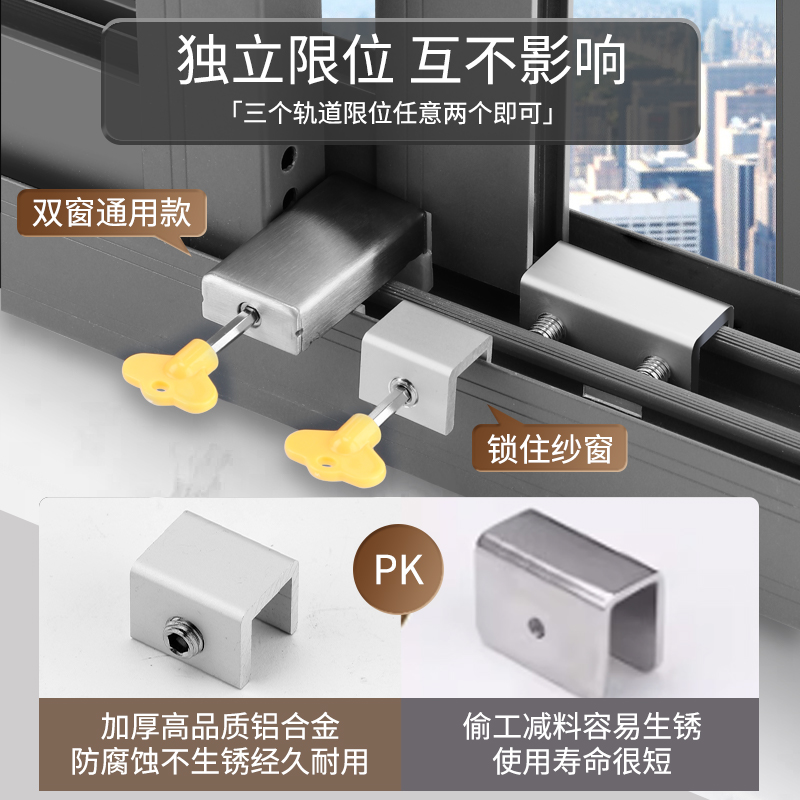窗户限位器纱窗固定卡扣铝合金儿童安全锁推拉防开门窗锁扣固定器