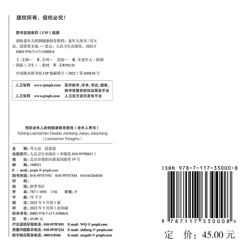 现货预防老年人跌倒健康教育教程老年人用书配增值主编耳玉亮段蕾蕾人民卫生出版 社9787117330008
