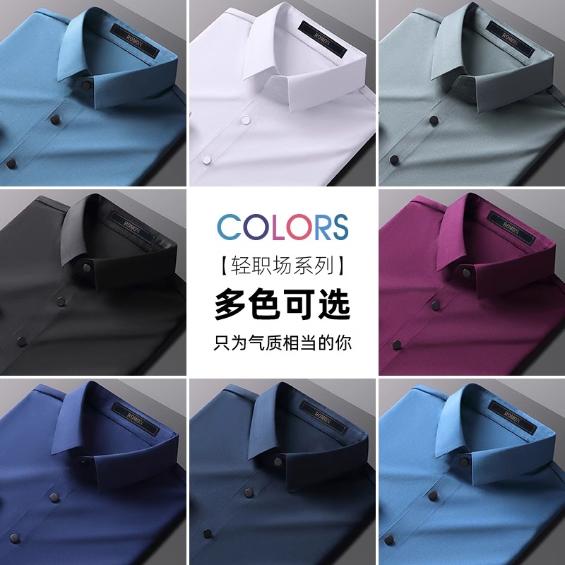 商务长袖 衬衫 2025秋季 职业工装 罗蒙男士 新款 无痕衬衣 高弹免烫